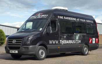 The Crafter’s interior has been transformed into a stylish white, black and chrome interior to match any of the smartest barber shops and is fully equipped with two leather salon chairs, mirrors, power points, hair driers, electric clippers, and a toilet/cloakroom cubicle.