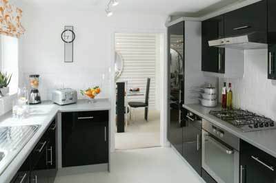 The Maidstone show home features a lime green and aqua colour scheme throughout. The Gloucester’s bold horizontal striped walls in the through-lounge next door and black polished marble effect worktops and chrome fittings in the modern kitchen have an immediate impact. Stunning modern light fittings and chandeliers also grab your attention in both properties.