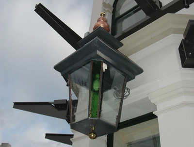 The 2.13m-high coach lamp was constructed by David Watts of Springbank General Metalwork, with the design based on photographs of the Victorian lamp that graced the original building in the 1880s.