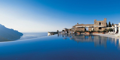 Situated on top of the mountains on the Amalfi coast, this 11th century palacehas been caringly restored to its former glory. The heated infinity pool is the centerpiece of the hotel and features top-notch poolside service, enabling travellers to fully relax. As one TripAdvisor traveller said, “The infinity pool was 28 degrees and the views from it are stunning.”