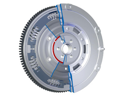 A dual mass flywheel (DMF) smoothes engine pulses by transmitting torque to the transmission through two flywheels connected by springs. The oscillating motion between the flywheels is much better suited to the properties of NORGLIDE bearings, which are virtually maintenance free, than roller or ball bearings which can suffer from a lack of grease take-up due to the high-frequent small movements of system. In addition, NORGLIDE bearings are less expensive, require less space, compensate for minor misalignments and reduce NVH (noise, vibration and harshness).